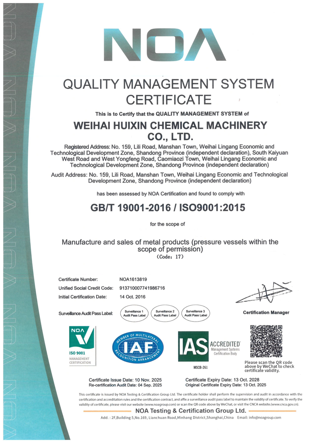 2019/05/05 Weihai Huixin Chemical Machinery Co.,Ltd (Manšano gamykla)