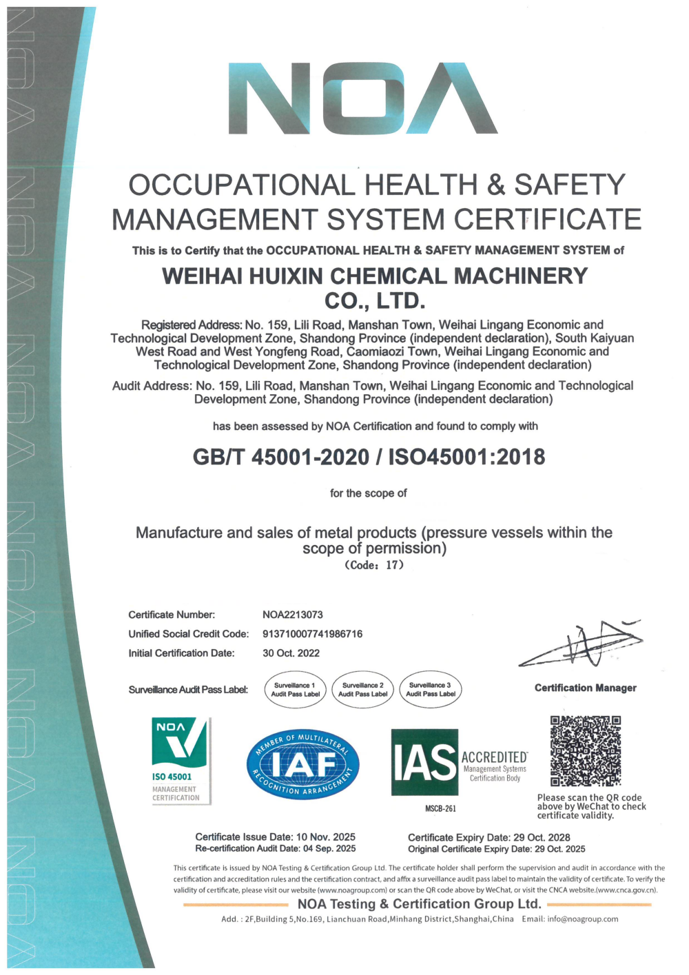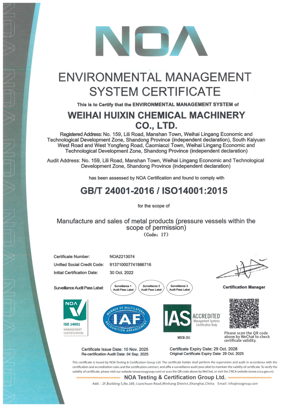 2005/gegužė/12 Weihai Huixin Chemical Machinery Co., Ltd (Caomiaozi gamykla)